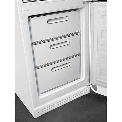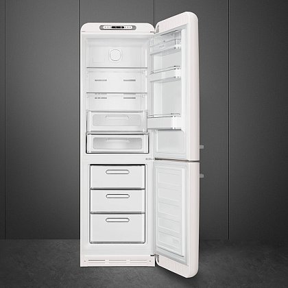 Холодильник SMEG FAB32RWH5 предназначен для кратковременного хранения различных готовых блюд, охлаждённых продуктов и напитков, а также для заморозки и длительного хранения замороженных продуктов и полуфабрикатов. Полки изготовлены из закалённого стекла, благодаря чему выдерживают большую нагрузку. Полки на дверцах выполнены из пластика. Данная модель идеально подойдёт для авторских интерьеров в уникальном стиле или для кухонь в классическом исполнении.