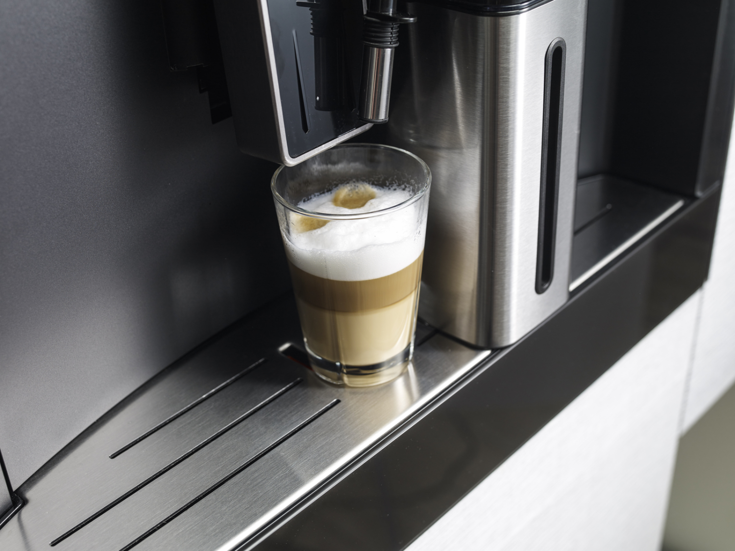 Встроенные программы позволяют выбрать до 13 функций приготовления — среди них 10 рецептов кофе, горячее молоко, подача горячей воды для заваривания чая, а также пар, который поможет получить молочную пенку, например, для десертов. Пользователь может отрегулировать крепость кофе, его температуру, а также количество, например, получить двойной эспрессо.