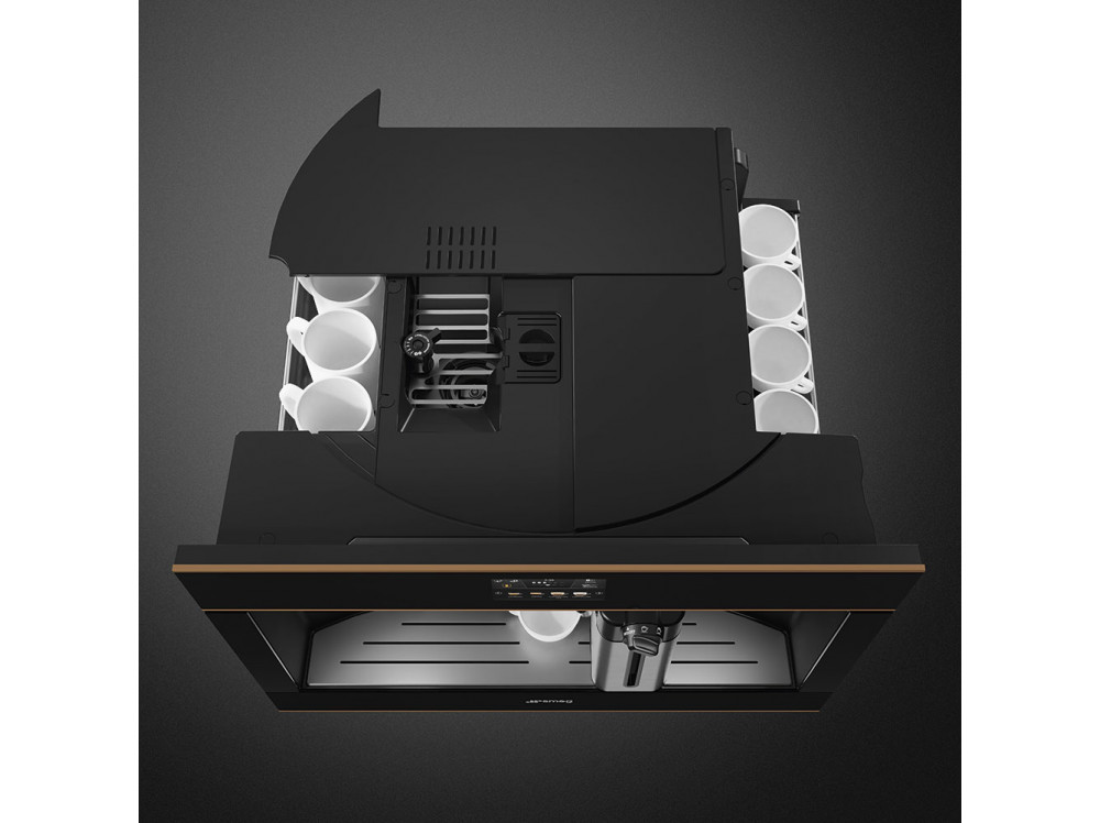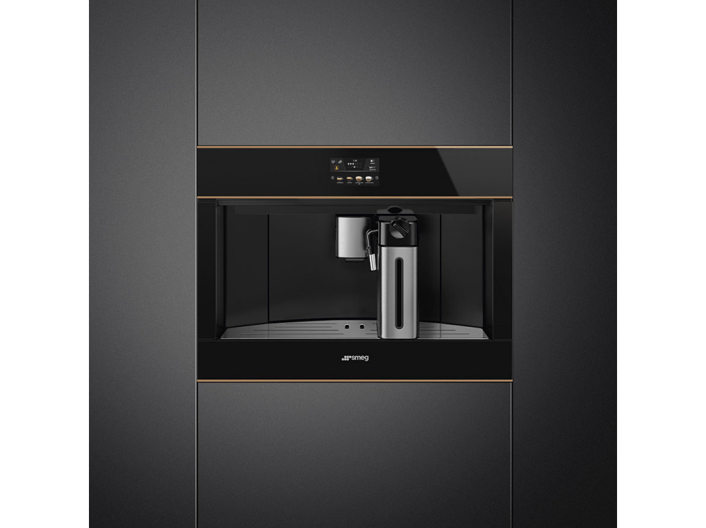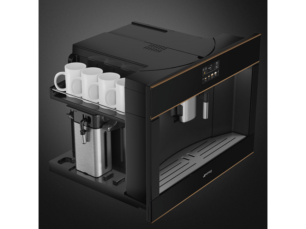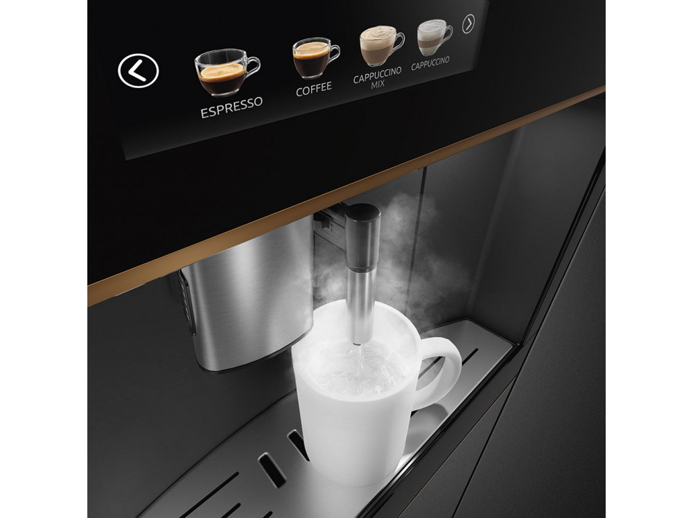 Встраиваемая кофемашина SMEG CMS4604NR, выполненная в современном дизайне, подчеркнёт индивидуальность интерьера и станет настоящим украшением Вашей кухни в квартире или загородном доме. Предназначена для приготовления эспрессо, капучино и других кофейных напитков.